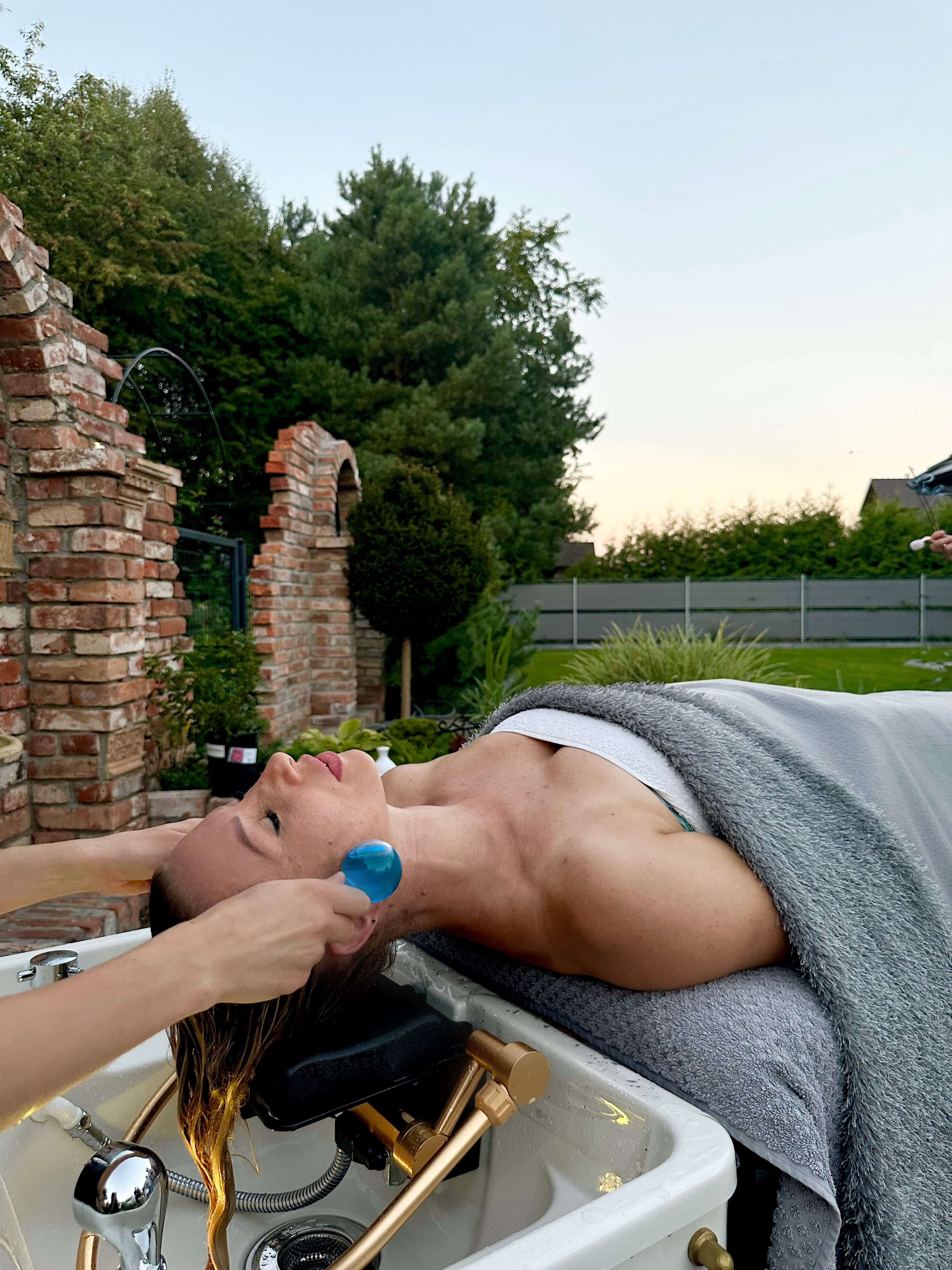 Masaż skóry głowy i karku – Kluczowy element zabiegu, który poprawia krążenie krwi, stymuluje wzrost włosów i zapewnia głęboki relaks. Często używa się olejków eterycznych, które dodatkowo pielęgnują skórę.
